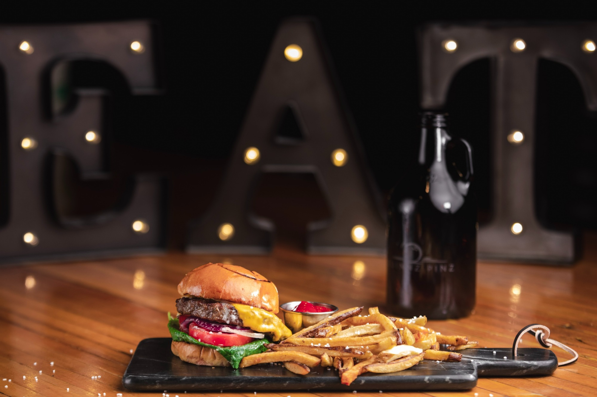 camembert 120g. bułka 100g. sos firmowy, sałata, żurawina, czerwona cebula, frytki 100g. -
